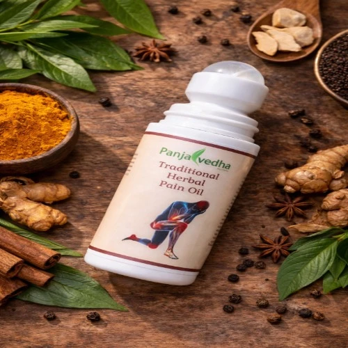 Panjavedha Herbal Oil is a natural massage oil designed to support comfortable movement and everyday body activity. It absorbs gradually into affected areas to ease discomfort, reduce swelling, and relax stiff muscles and joints. Suitable for regular home use, it helps maintain flexibility and freshness for those who sit for long hours, travel frequently, or feel tired after daily work.